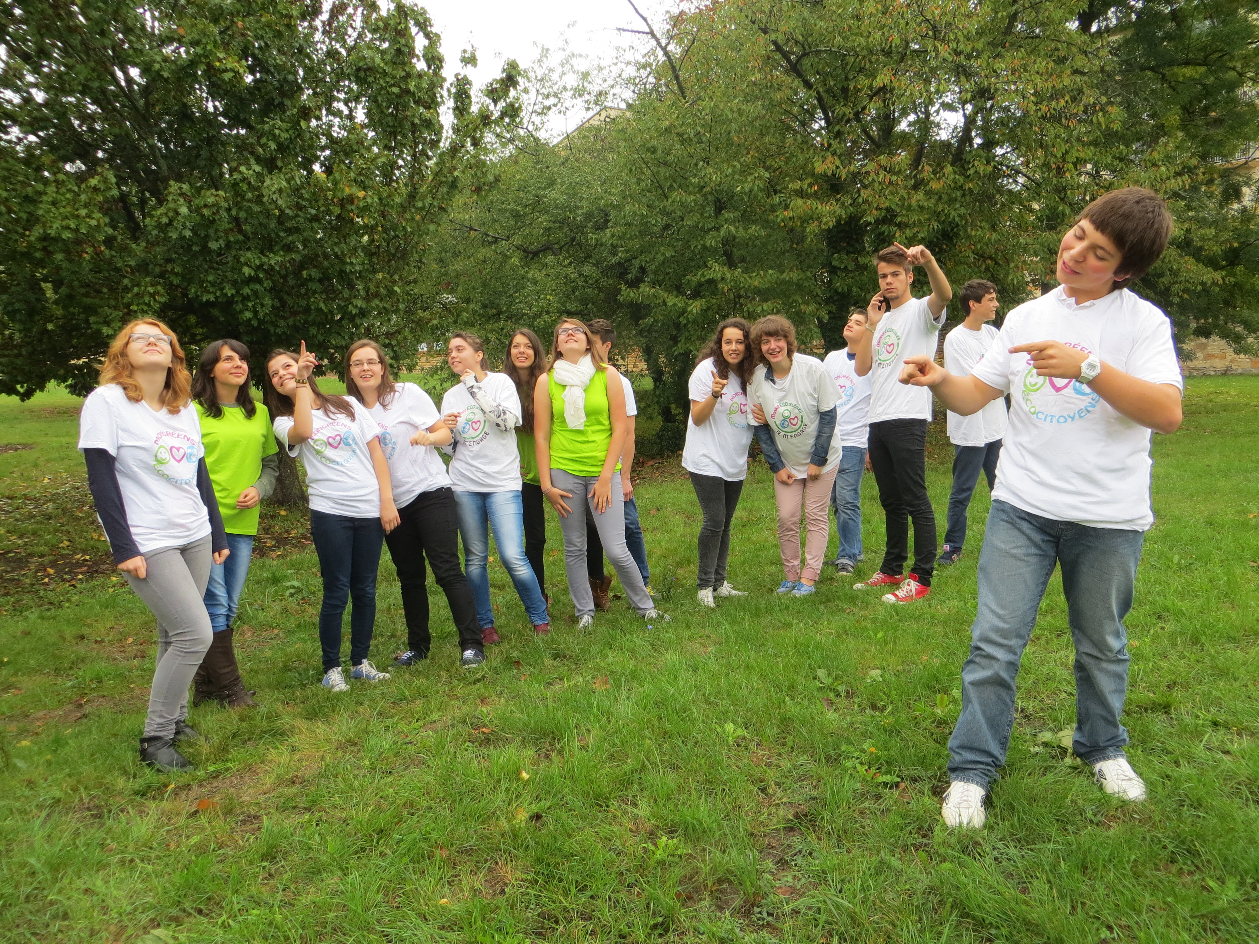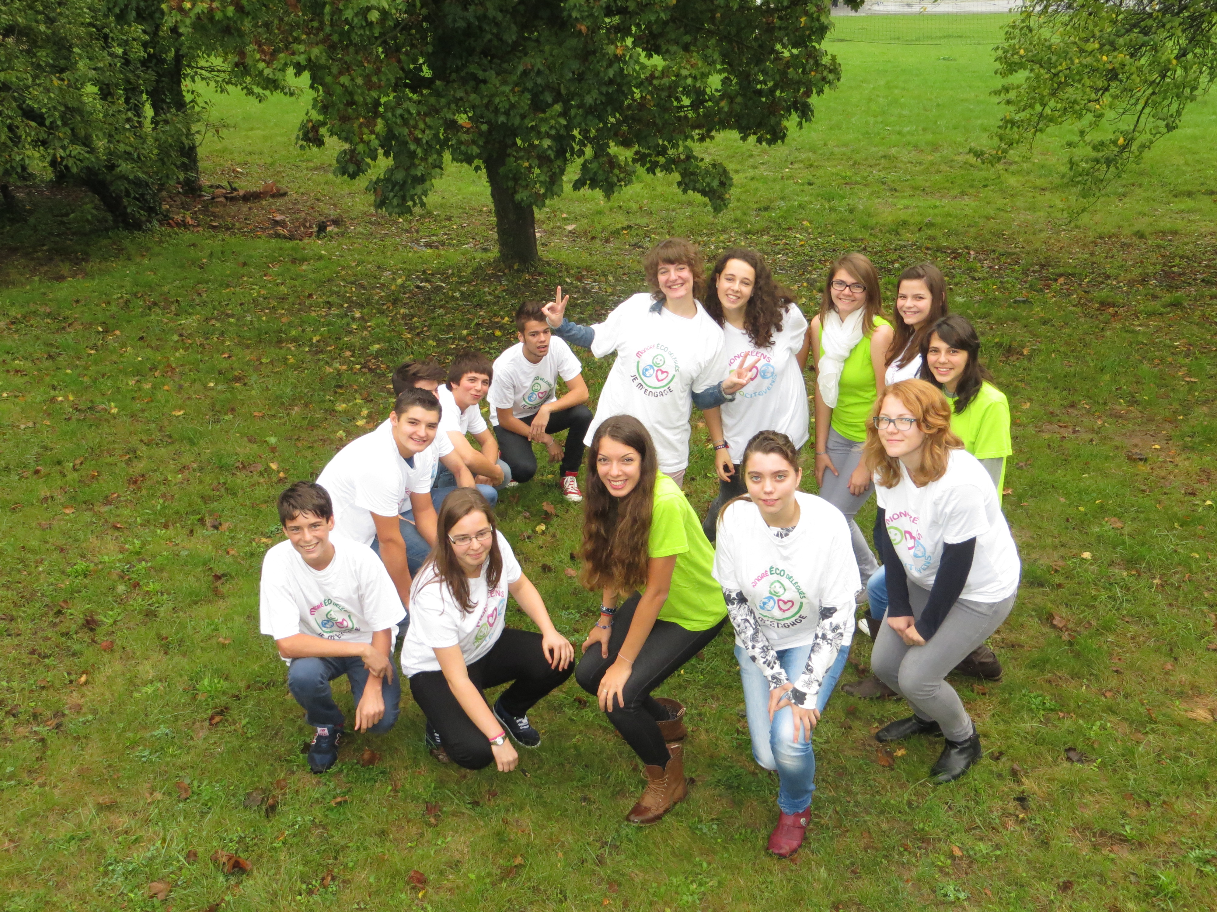 le 16/10/2014 : Lors de leur demi-journée de formation, les éco-délégués posent dans le parc !